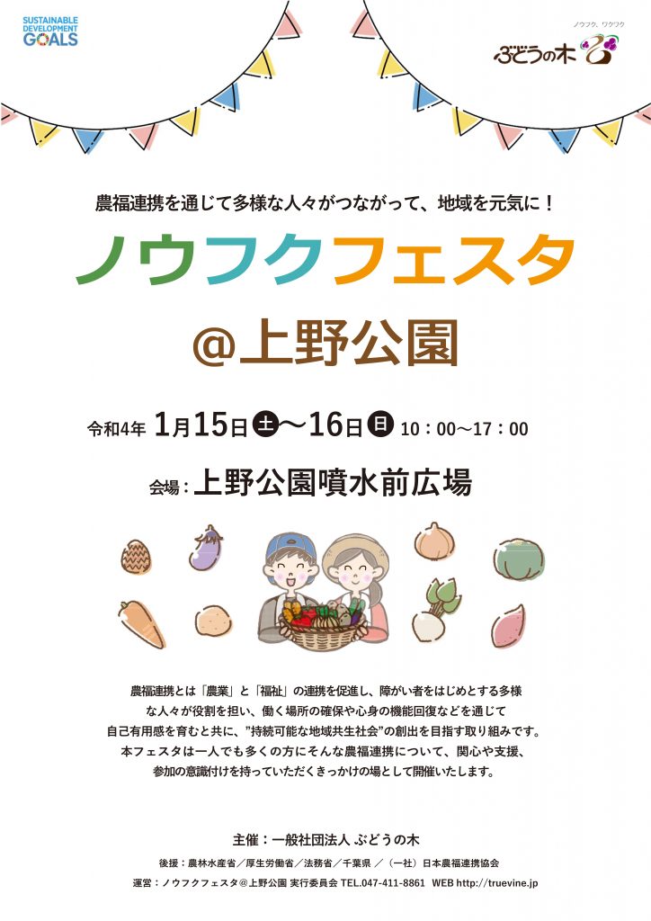 農福連携を通じて多様な人々がつながって、地域を元気に! 1月15(土)16(日)は上野公園でノウフクフェスタ