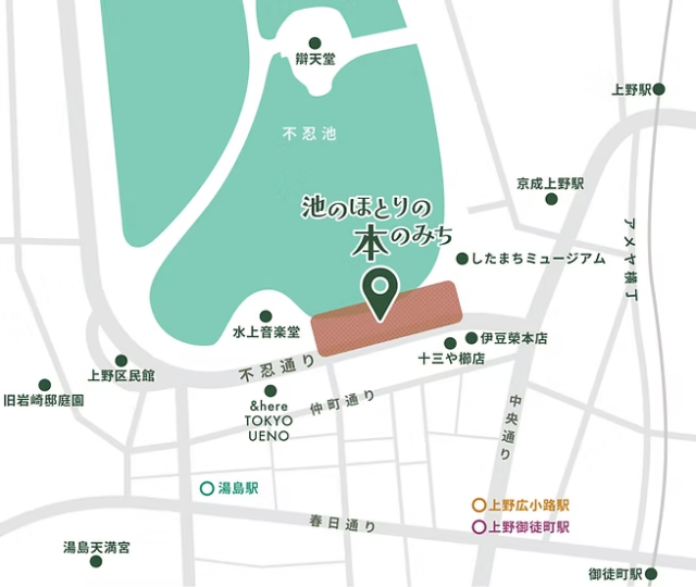 JR「上野駅」不忍口から徒歩すぐ。東京メトロ千代田線「湯島駅」や銀座線「上野広小路駅」からもアクセス可能。池のほとりを歩きながら楽しめるエリア一帯が会場になります。